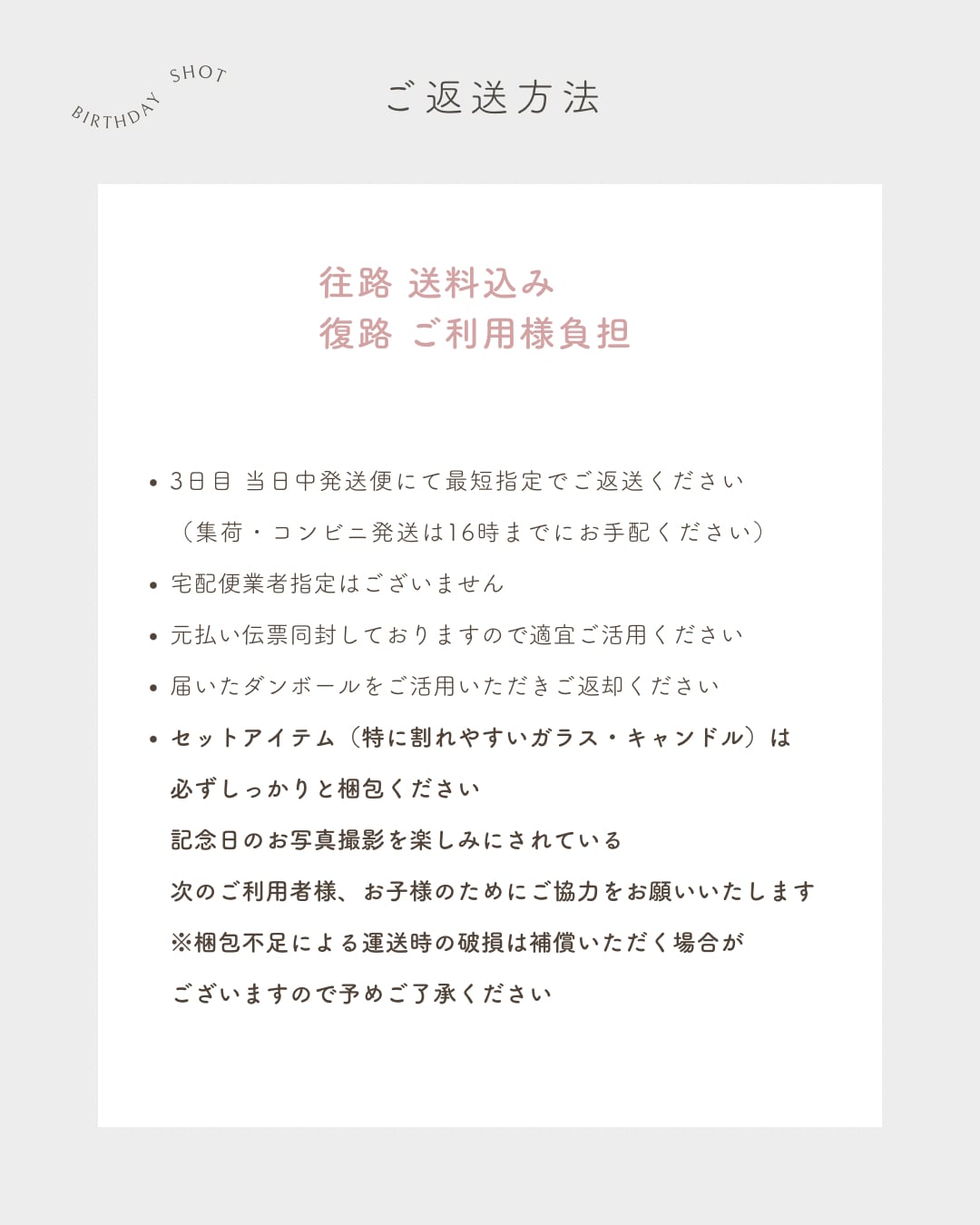 ご返送方法をご確認の上ご利用ください^^ ご不明点がございましたらお気軽にお問い合わせください。