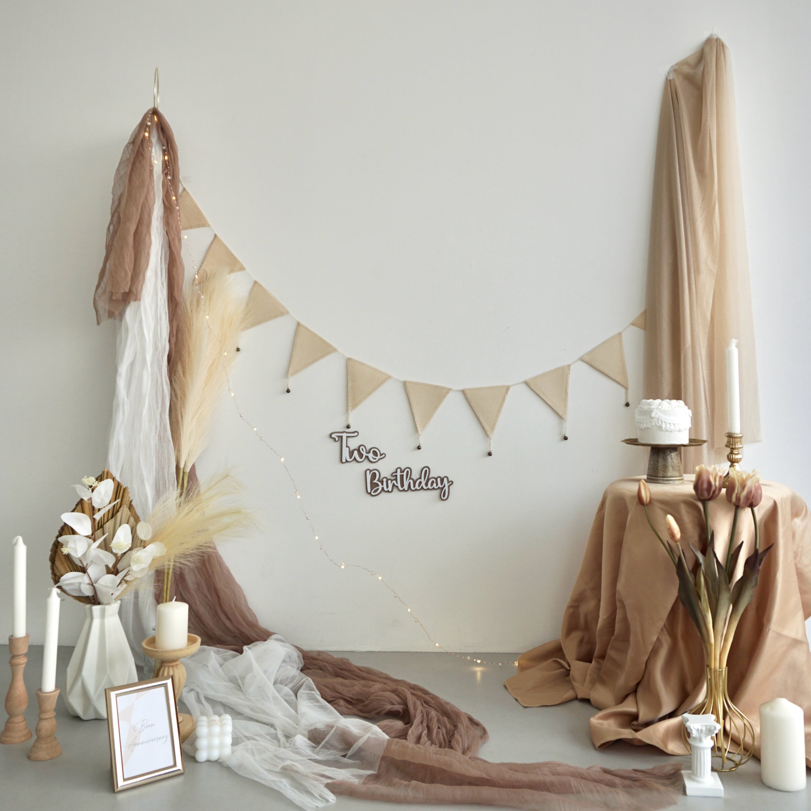 パンパスグラスやチューリップを使った、立体感あるくすみカラーベースのセットで、ご自宅で本格的にご撮影いただけます^^